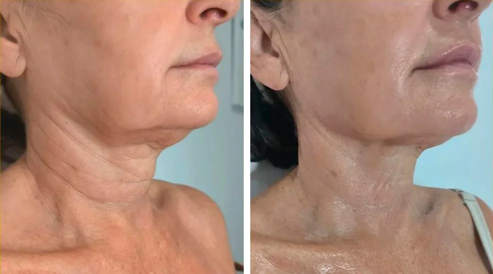 En las siguientes imágenes se puede apreciar de forma clara la eficacia del tratamiento, con cambios visibles inmediatos y progresivos en la piel. El resultado es un cuello con una piel más suave, mejor hidratación y una textura visiblemente renovada, manteniendo siempre una apariencia natural. Estos cambios reflejan resultados naturales, que respetan la armonía de la zona tratada y mejoran su aspecto sin perder naturalidad.